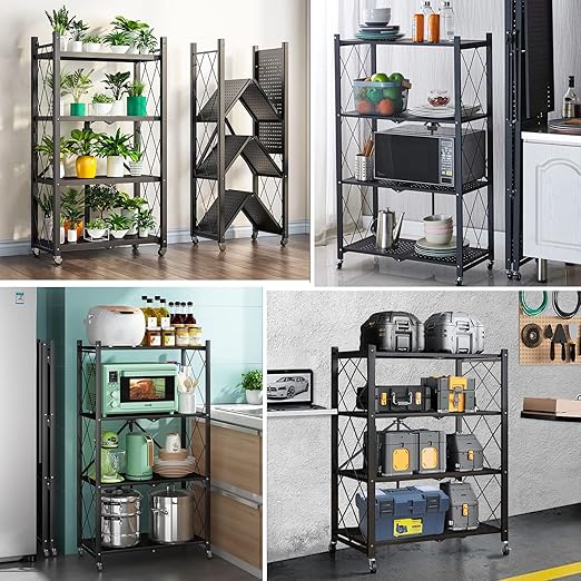 fantastique chariot de rangement pliable, peut être placé à plat sur le mur, parfait pour économiser votre sol et optimiser l’utilisation de l’espace, la conception pliable convient aux espaces limités, tels que les appartements, les cuisines, les dortoirs, les chambres, les salles de bains, etc.