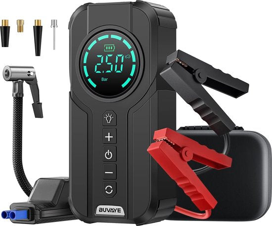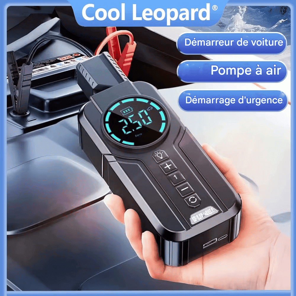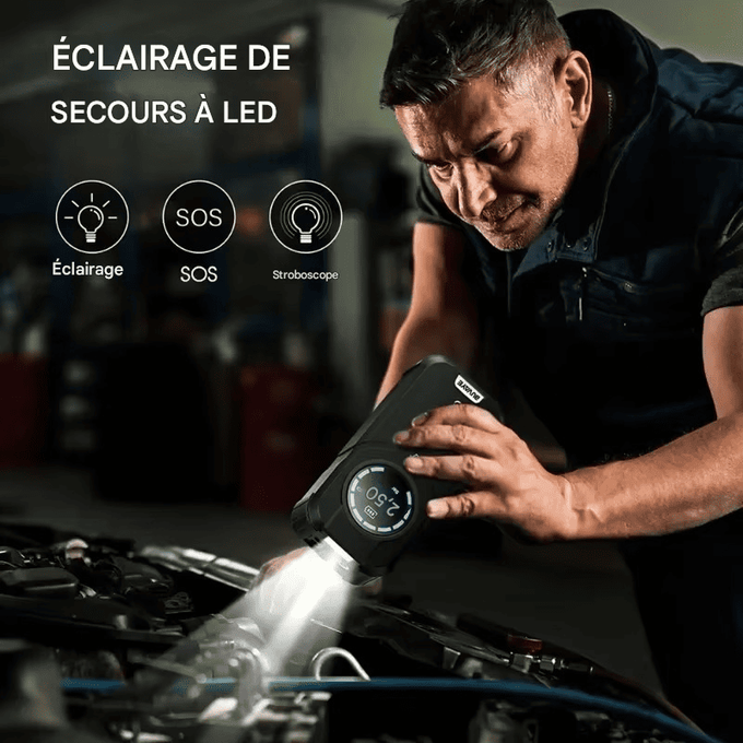 Avec ce démarreur multifonction puissant 4-en-1, démarrez votre véhicule en quelques secondes, regonflez vos pneus, rechargez vos appareils et éclairez votre environnement en toute situation d’urgence🔥.