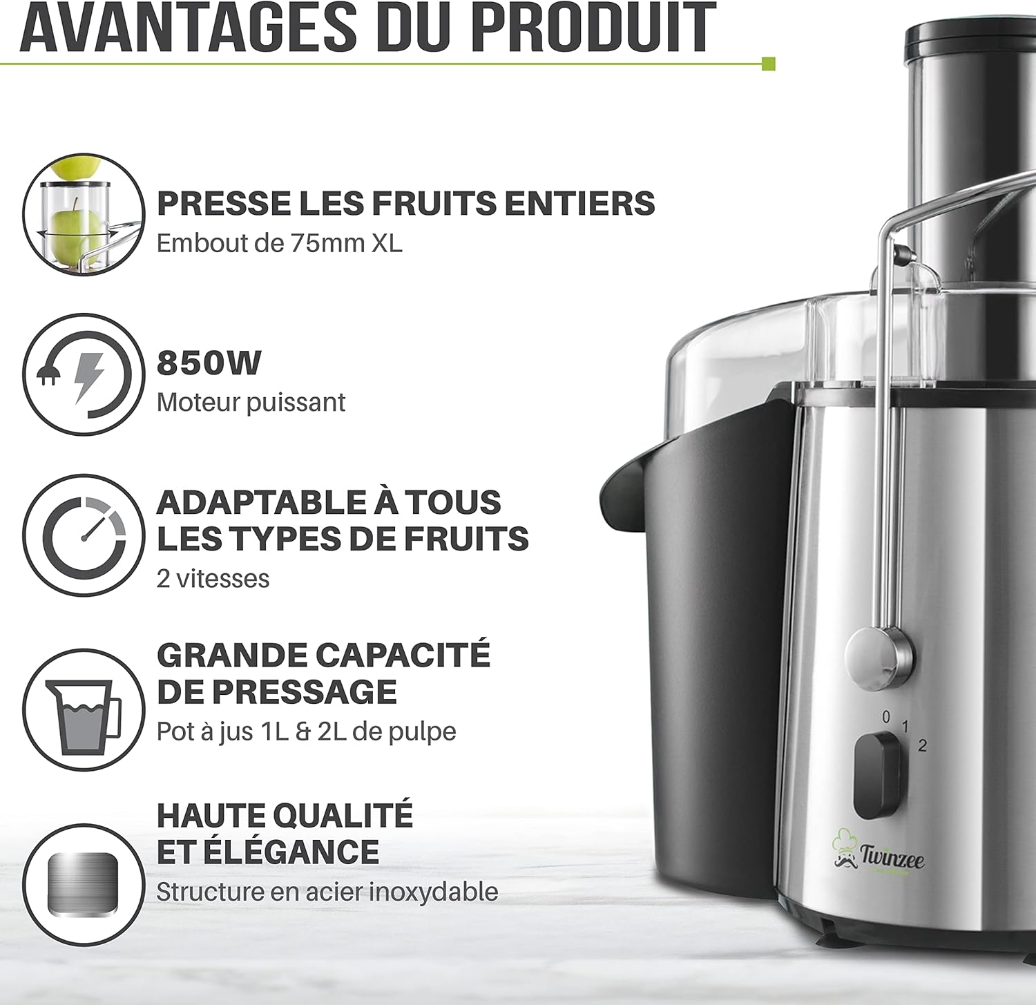 Il broie, filtre et extrait votre jus en quelques secondes, sans effort 🧽✨.